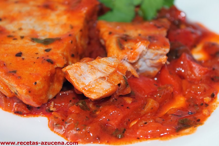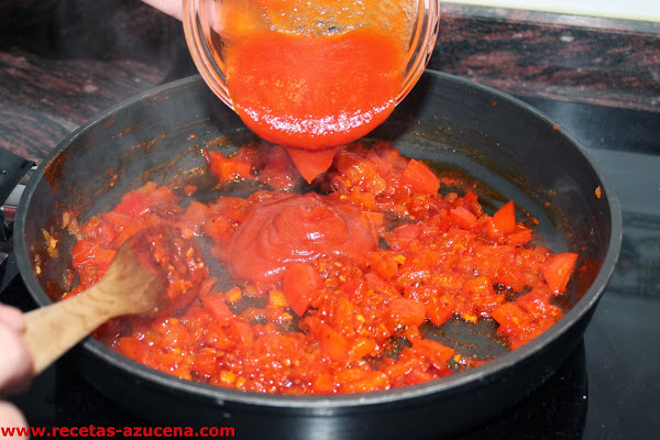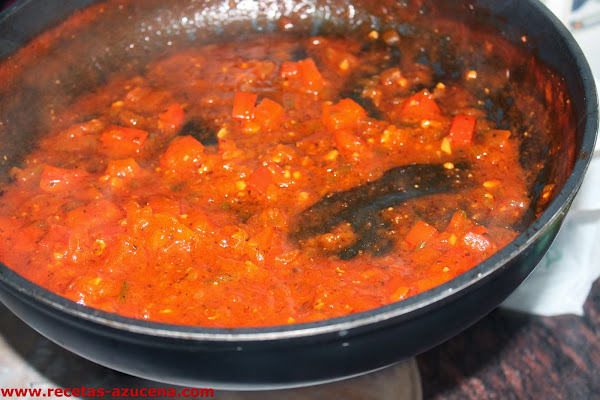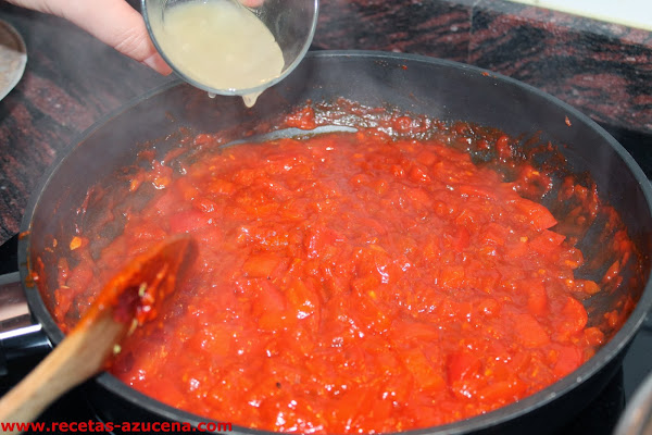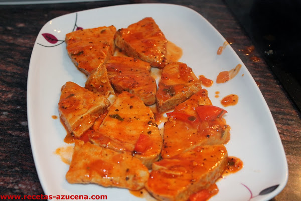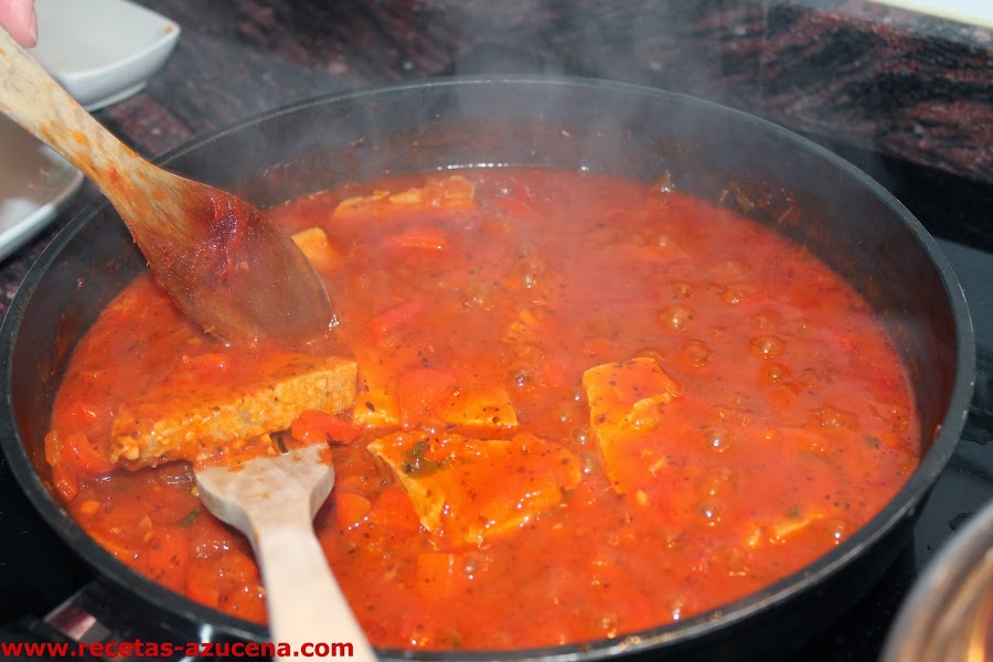 Ya tenemos el atún listo, con cuidado lo sacaremos de la sartén y dejaremos el sofrito al fuego hasta que reduzca bien el agua y se quede como una salsa.