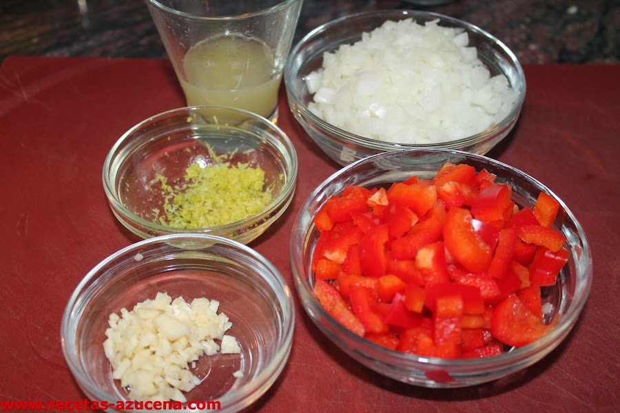 El pimiento lo lavaremos y le quitaremos todas las semillas de dentro para picarlo un poco más grande que la cebolla, yo particularmente lo pico más grande para que se quede más entero.