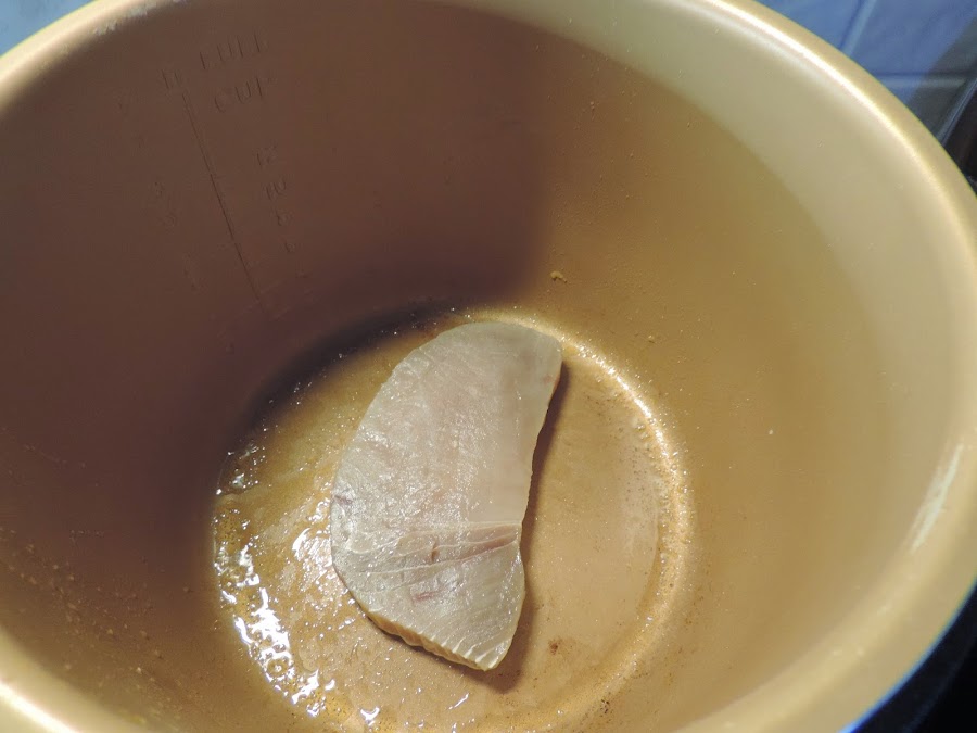 Poner unas gotas de aceite de oliva en la cubeta y echamos 2 filetes.
