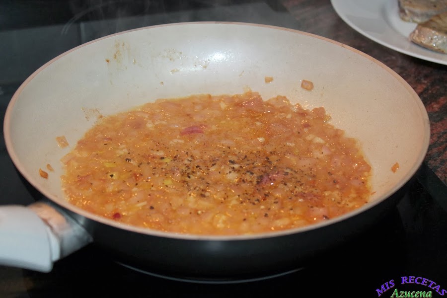 Cuando el tomate suelte todo el agua añadiremos unas gotas de tabasco, esto lo dejo a elección de cada uno según el picor que te guste.