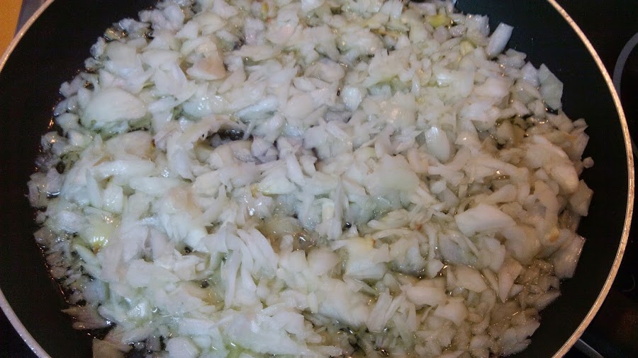 Picamos las cebollas y las pochamos en una sartén amplia con un chorreón de aceite.