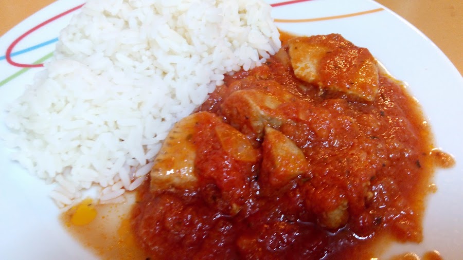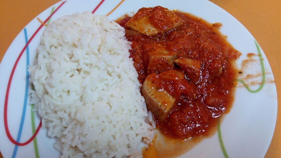 Lo dejamos un ratito, el suficiente para que se haga pero que no quede demasiado seco. Yo lo he acompañado de arroz blanco.