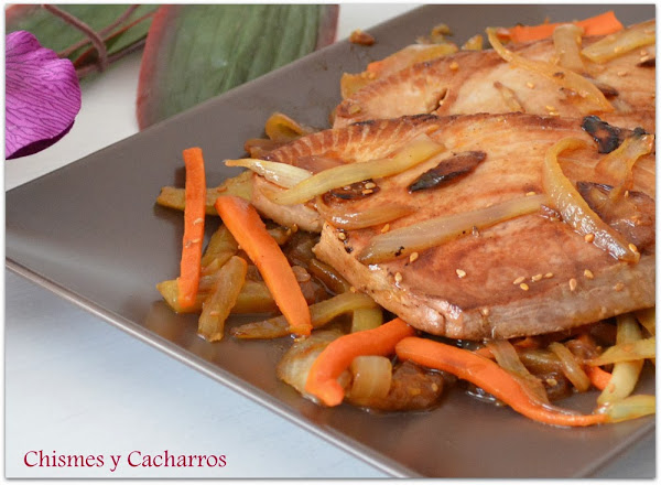 Una receta de pescado con un toque oriental que le va genial. Tengo pocas recetas de pescado en el blog ya que en casa somo más de carne, eso sí bacalao comemos bastante,jeje.