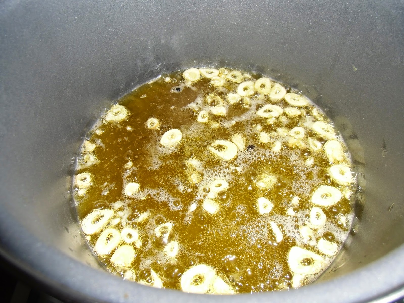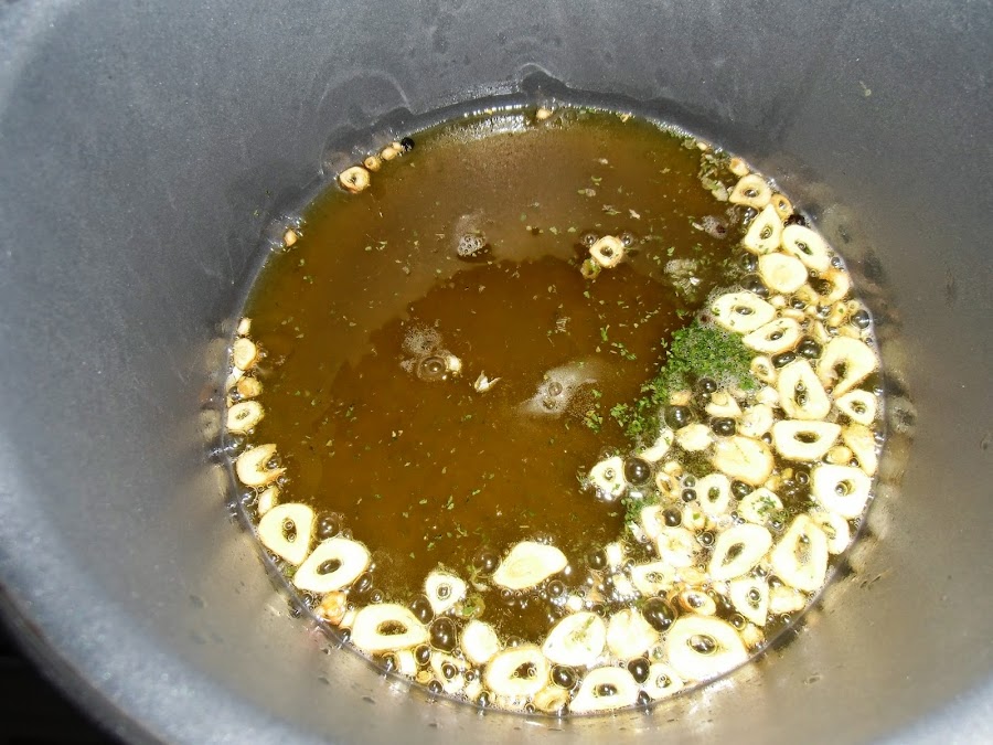 Cortamos los dientes de ajo en láminas y los incorporamos junto con un clavo y 15 ó 20 granos de pimienta.