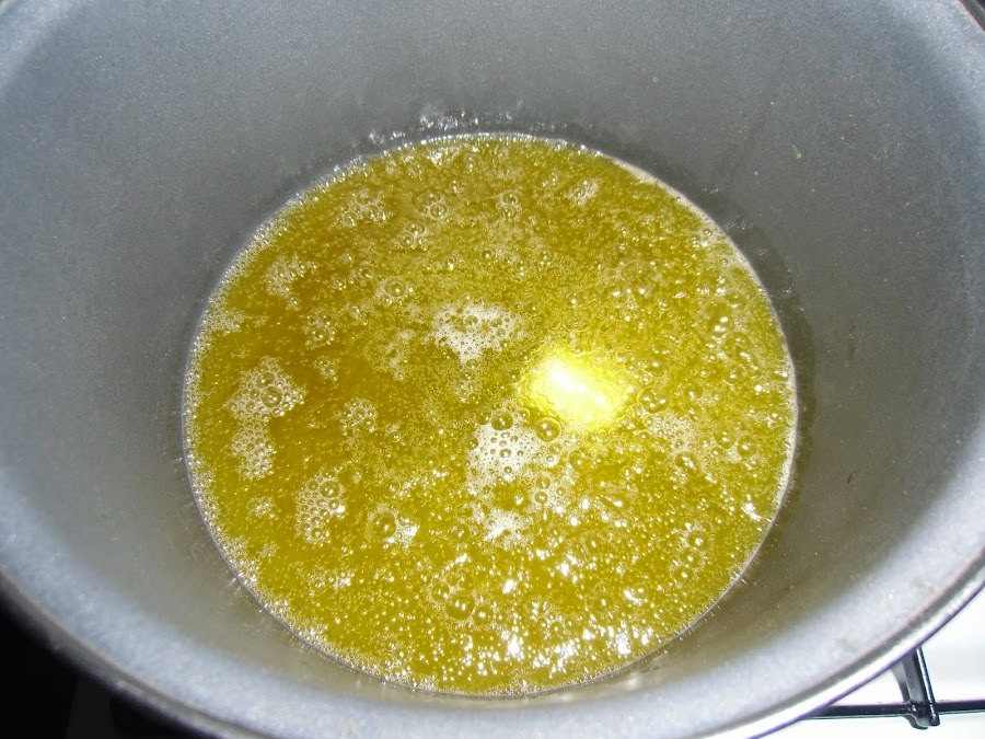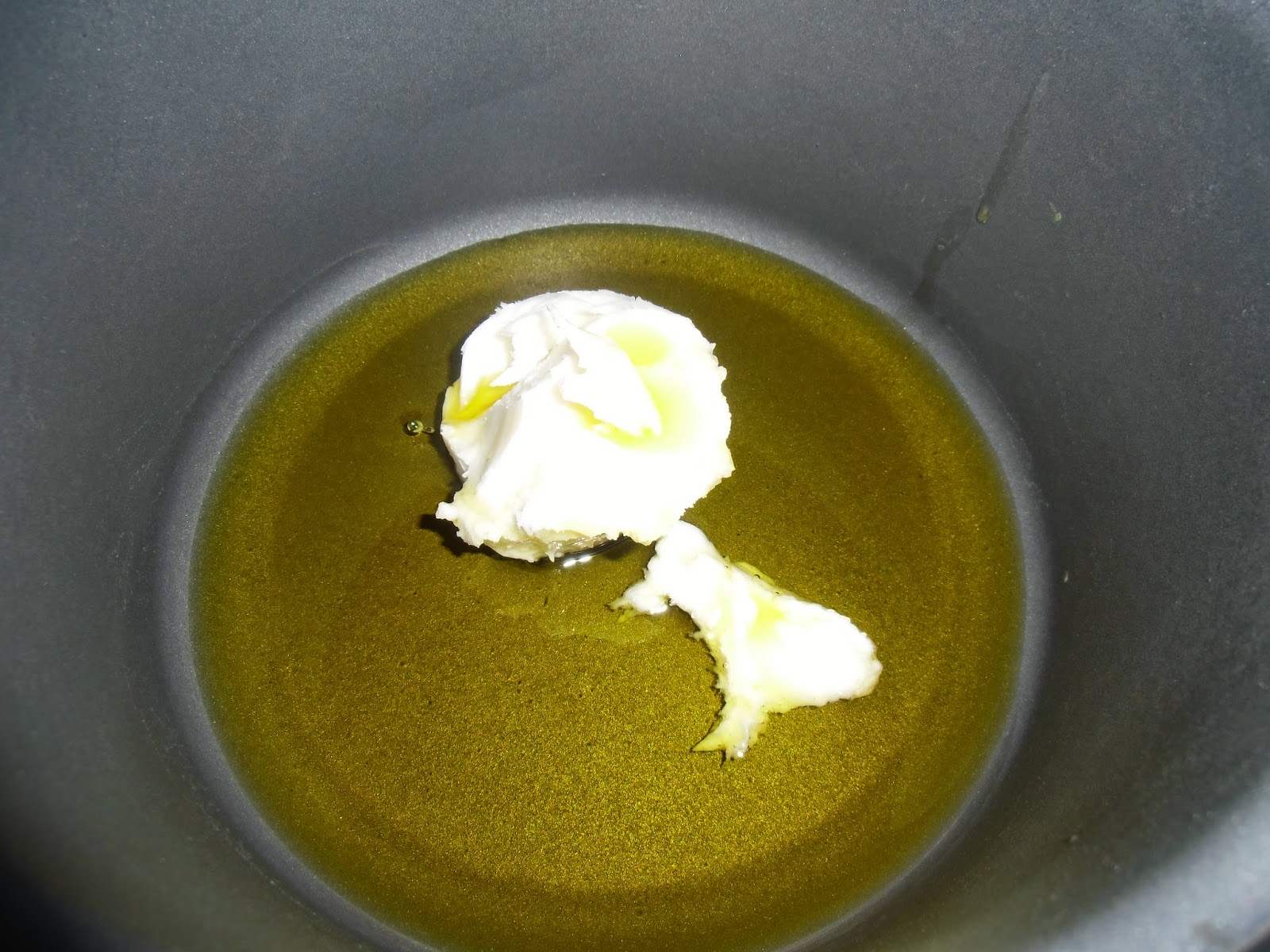 En una olla a fuego medio ponemos el aceite, la manteca y la derretimos