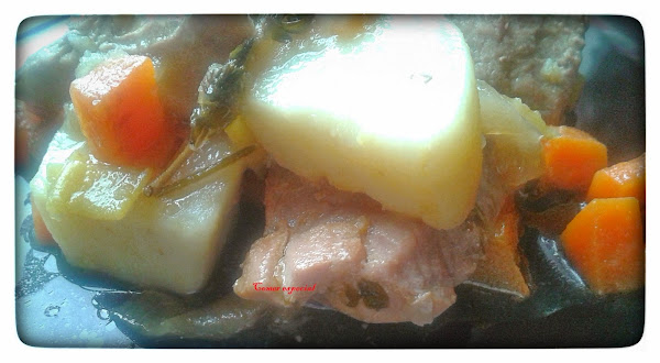 INGREDIENTES: 1 cebolla bien hermosa cortada en gajos, 1 puerro en rodajas, un ajo picado, perejil fresco también picado, tomillo fresco, medio kilo de atún, 2 papas grandes en tacos, vaso y medio de agua, 1 vaso hermoso de vino blanco, 2 zanahorias en tacos pequeños, sal y aceite.