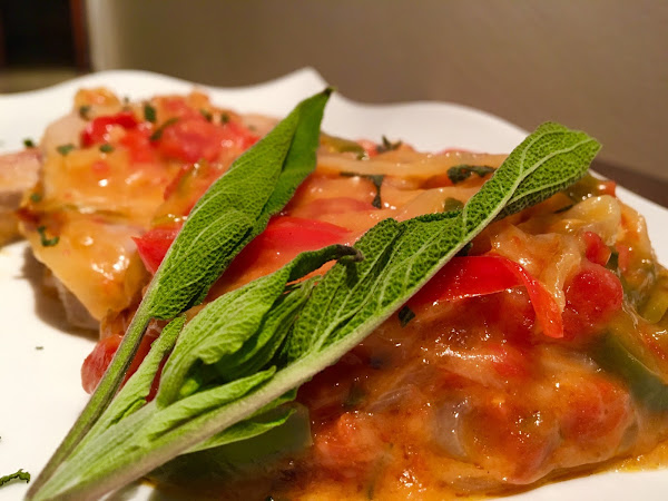 Para decorar y acabar de dar aroma y sabor podemos picar una hoja de salvia y podemos espolvorearla por encima de todo el conjunto.