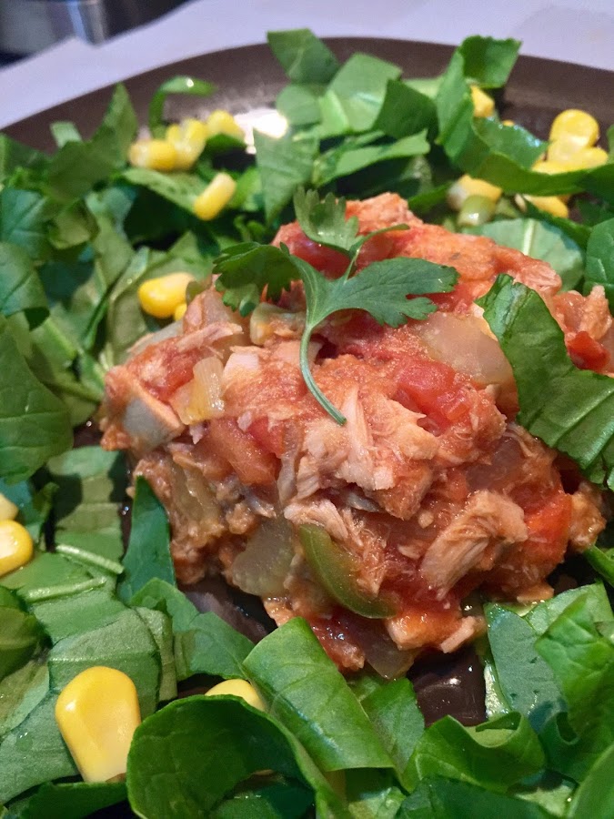 2.- Si andas muy light puedes acompañarlo con una ensalada de lechuga, aguacate y limón, o como yo que lo acompañé con ensalada de espinacas y elote yummi yummi.
