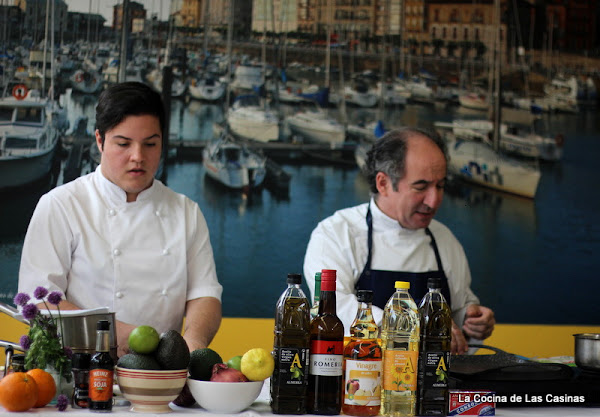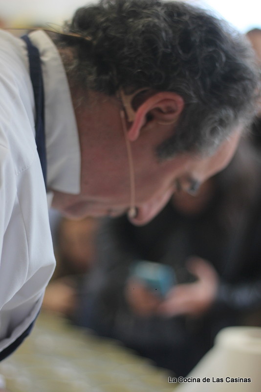Si ya estaba impactada, el arte siguió. Hay días y días, jejeje. La degustación posterior que nos ofreció el chef asturiano Jose Antonio Campoviejo, estrella michelín en su restaurante El Corral del Indianu, fue un placer y una exquisitez. Yo he versionado una de sus recetas, nos ha encantado.