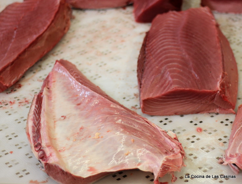 Colocan las piezas y ahí te vuelves loc@ pensando ¿qué elijo?. Yo me decanté por el Tarantelo que es la parte que está situada sobre la Ventresca. Es el trozo rectangular que ves abajo al lado de esa espectacular ventresca.
