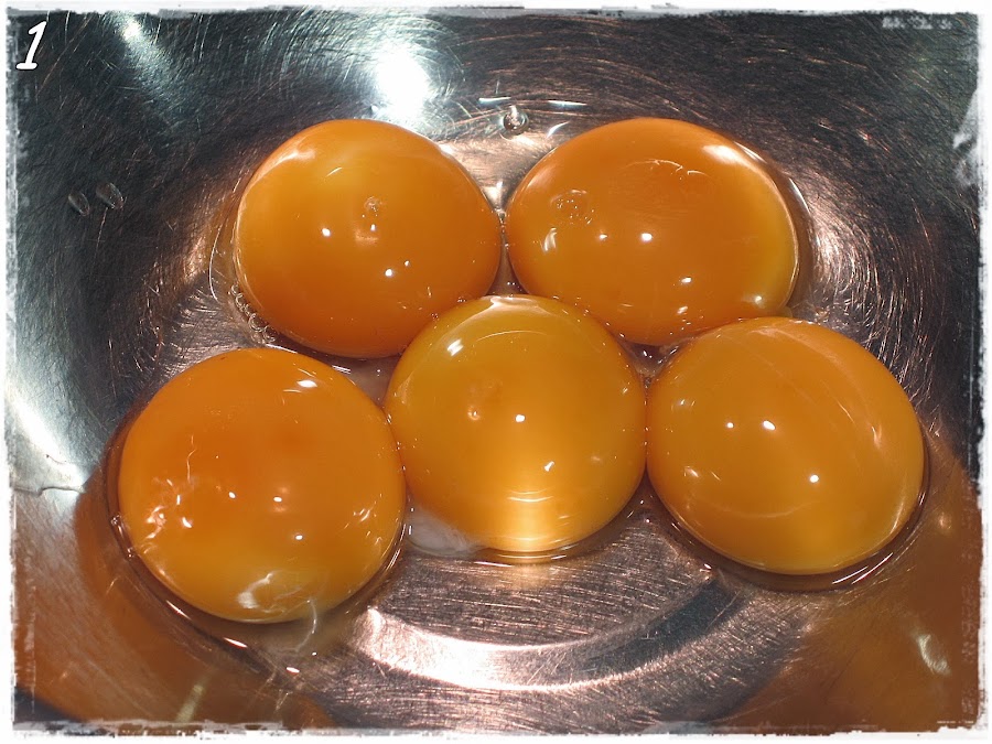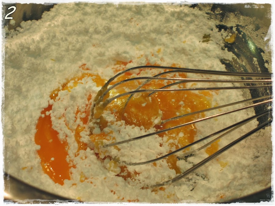 Añadimos el azúcar glacé a las yemas y mezclamos bien.