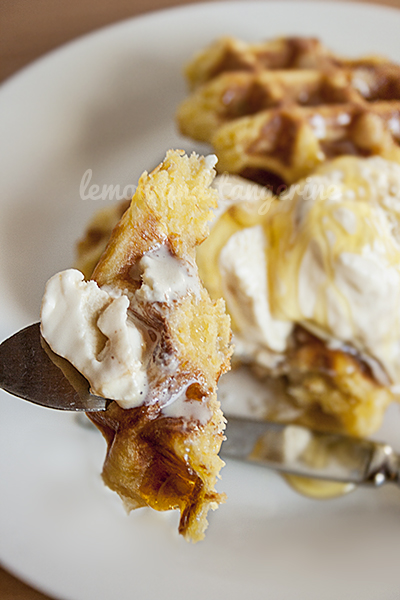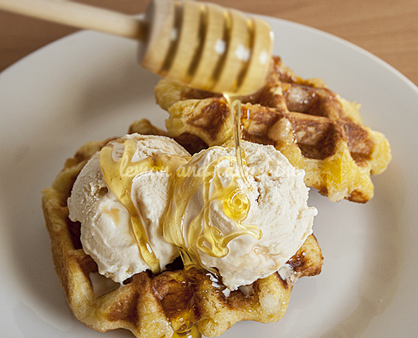 La prueba de fuego venía con el paladar exquisito de mi novio, que desde que la tenemos quiere comer el gofre belga, crujiente por fuera, tierno por dentro, con sus bolas de azúcar... Y según él estos son muy parecidos, prácticamente iguales a los de los puestos de gofres en la calle.