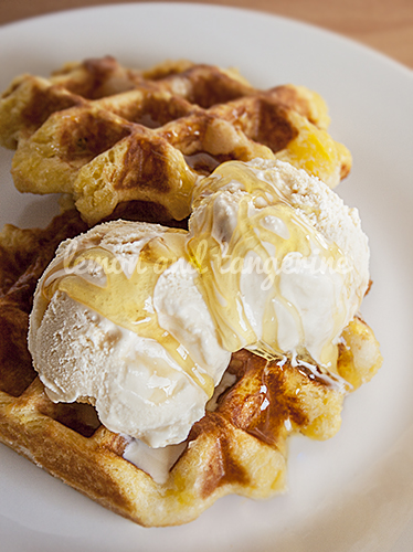 Para controlar cuánta masa echáis podéis usar una cuchara de helado. En cada hueco puse lo que equivaldría a una bolita y quedaron unos gofres xeitosos, como decimos en mi tierra: ni pequeños ni grandes.
