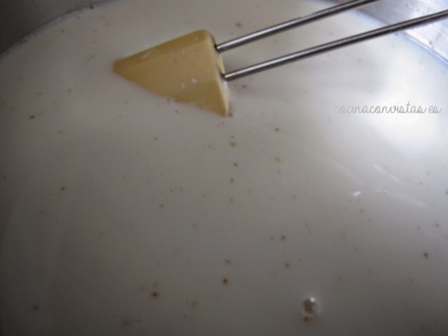 Poner a calentar 2 vasos de leche, añadir la esencia de vainilla y verter ahí la avena y la maizena, quedará una pasta espesa.