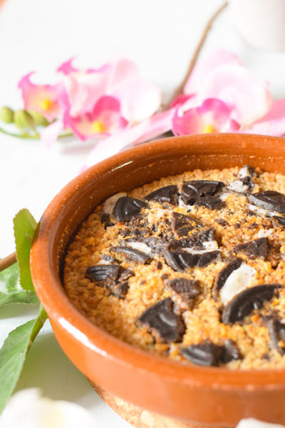 Hace tiempo que llevo viendo en instagram recetas de avena al horno y era algo que me llamaba mucho la atención ya que yo normalmente el porridge lo hago a modo rápido en el micro y la verdad es que me sorprendido mucho el resultado.
