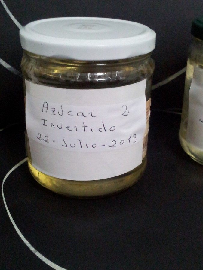 Como ya sabéis el azúcar invertido se forma por una reacción química de hidrólisis ácida o inversión enzimática, donde se rompe la sacarosa, es decir el azúcar común de mesa, en los elementos básicos que la componen glucosa y fructosa.