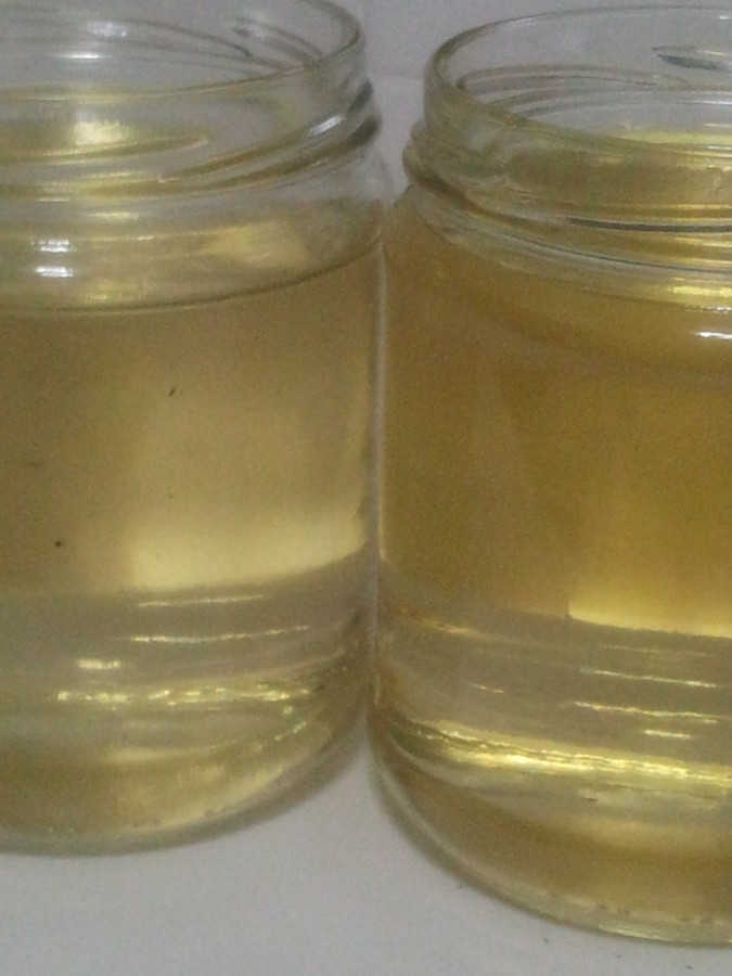 En mi caso, el azúcar invertido en Thermomix, programado a 6 minutos, 80º , velocidad 4, he observado una pequeña diferencia que su color y textura es distinta a la programada a 7 minutos, 100º , velocidad 3. Como podéis comprobar en la foto, el tarro de cristal de la derecha, su color es un poco más intenso al igual que la densidad del almíbar. Esto quiere decir que no se cristalizará en el fondo con el tiempo, por lo tanto que quedo con la segunda versión.