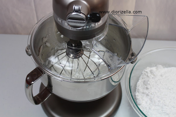 Luego, dejas que el azúcar se mezcla por unos cuantos segundos y le agregas un chorito de agua a la mezcla de la manteca y el azúcar. Nuevamente dejas que mezcle por unos segundos y continúas repitiendo lo anterior que es agregar un poco de azúcar y luego un chorito de agua hasta que se termine el azúcar.