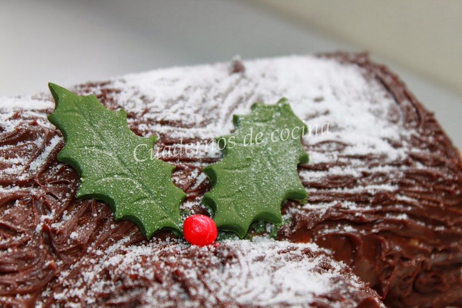 El "Bûche de Noël" es un bizcocho presentado en forma de tronco navideño, que suele estar cubierto de chocolate y relleno también de chocolate o nata (crema de leche) y con algunos frutos secos como nueces, aunque hay muchas variedades. Este postre representa el tronco quemado desde Nochebuena hasta Año nuevo, como promesa de un nuevo comienzo. En Francia el dulce típicamente navideño es también bien conocido aquí en España: El Bûche de Noël o tronco de Navidad, aunque también es típico en otros países, es originario del país galo, donde la tradición está muy arraigada." (Texto extraído de Cuky"s Cookies)