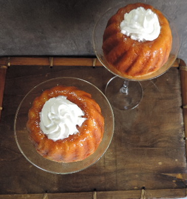 Ponemos un poco de almíbar en las copar y colocamos el babà.Decoramos con la nata montada (crema de leche) y servimos.