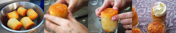 Elegir vasitos de un diámetro y altura algo mayor al baba almibarado. Puede recortase para que ajuste mejor, pero siempre antes de remojarlos en el almíbar.