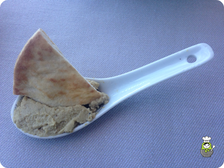 Trituramos todos los ingredientes con la batidora hasta obtener una pasta lisa y homogénea. Servimos el paté frío junto con trocitos de pan pita tostado o crudités.