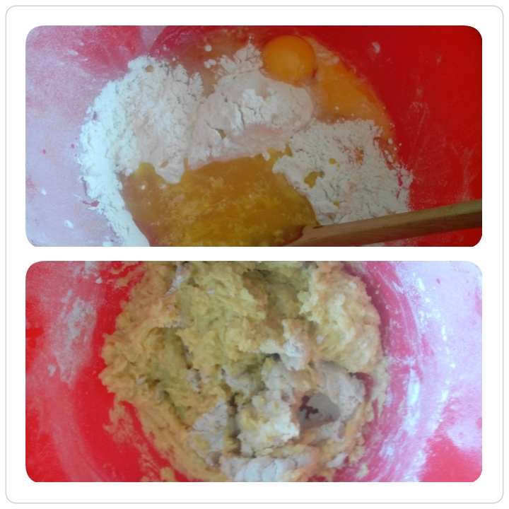 En otro bowl mezclamos el resto de harina, junto con los huevos, mantequilla derretida y sal.