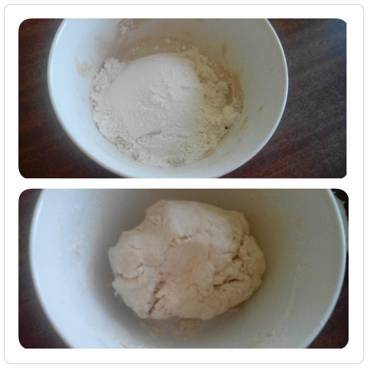 En un bowl comenzamos disolviendo la levadura con 3 cucharadas de agua tibia y agregamos 60 gramos de harina. Mezclamos y dejamos reposar por al menos una hora hasta que doble su tamaño.