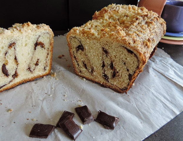 Sobre una mesa enharinada amasamos un poco la masa para quitarle el aire.Estiramos hasta formar un rectángulo espolvoreamos con el chocolate rallado y enrollamos como si fuera un brazo de gitano.Doblamos y retorcemos un poco.