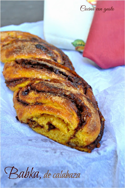 Me viene a la mente y al paladar el rico King Cake relleno de nueces y chocolate que preparé hace unos meses y que me dejó tan buen sabor de boca que he repetido relleno. Para que no fuera igual, he cambiado al masa y la he hecho con Calabaza, que no suele fallar en repostería (soy fan de ella en recetas dulces, no tanto en saladas)