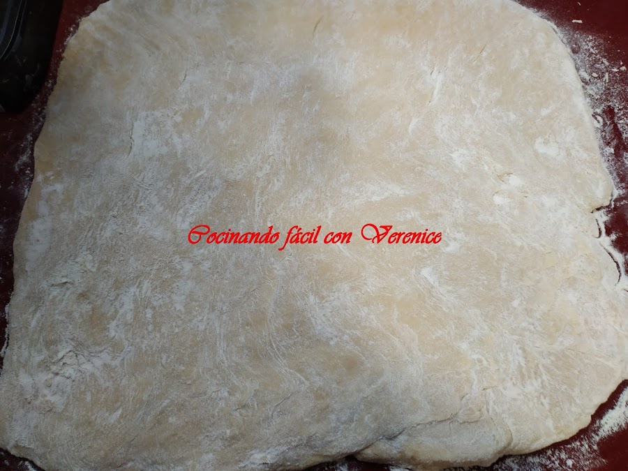 En este momento se saca la masa y se estira para hacer un rectángulo y rellenarlo con la crema de chocolate y las nueces partidas.