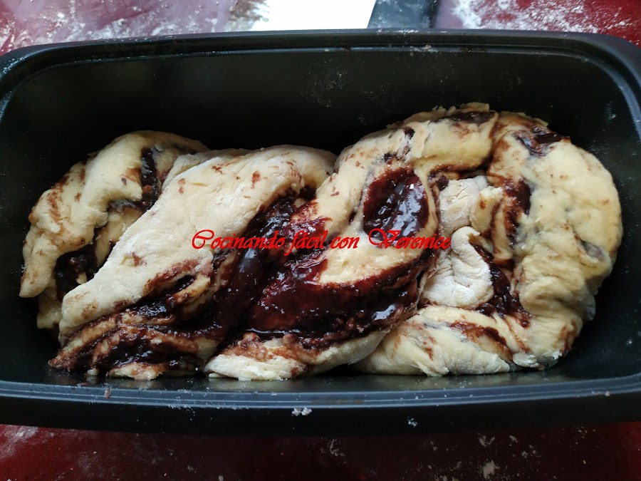 Hasta aquí el método es igual, solo que puse la masa ya trenzada en el Ultrapro y lo dejé levar hasta doblar el volumen, unas dos horas.