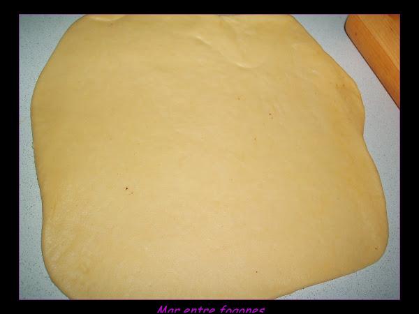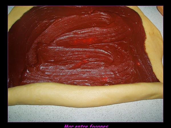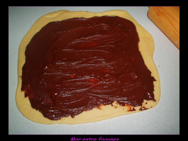 El otro babka, también estiramos la masa y pintamos con el chocolate.