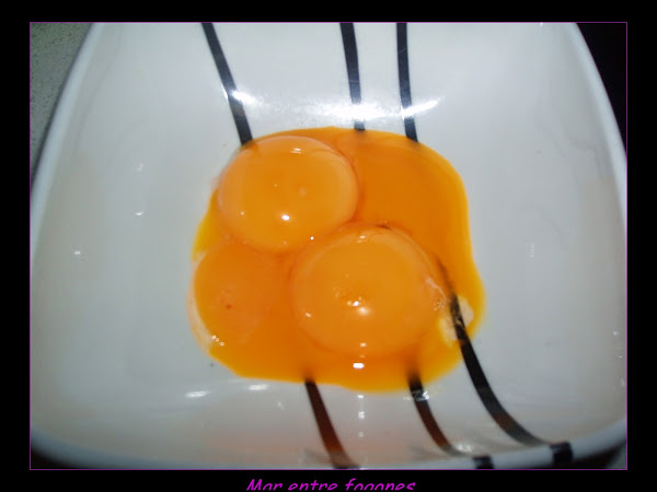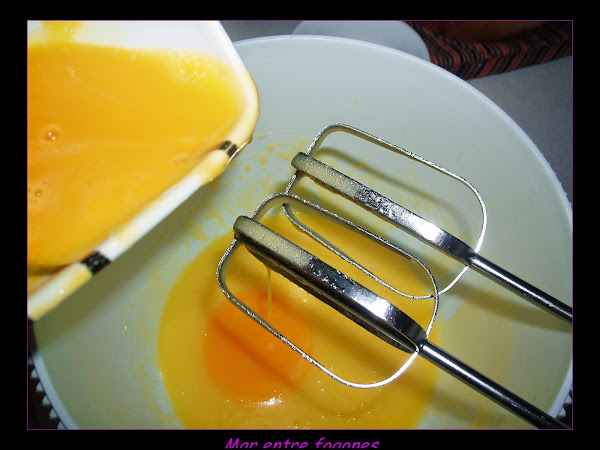 Cuando tenemos bien mezclado, añadimos la mezcla de las yemas poco a poco ( yo lo he añadido en tres veces).