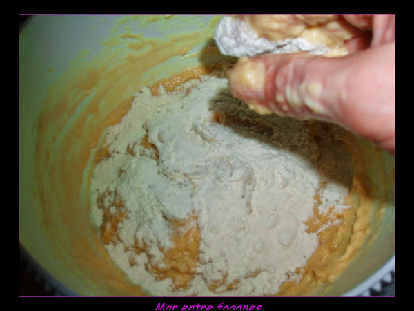 Echamos la mitad mas o menos a la mezcla anterior y reservamos el resto.