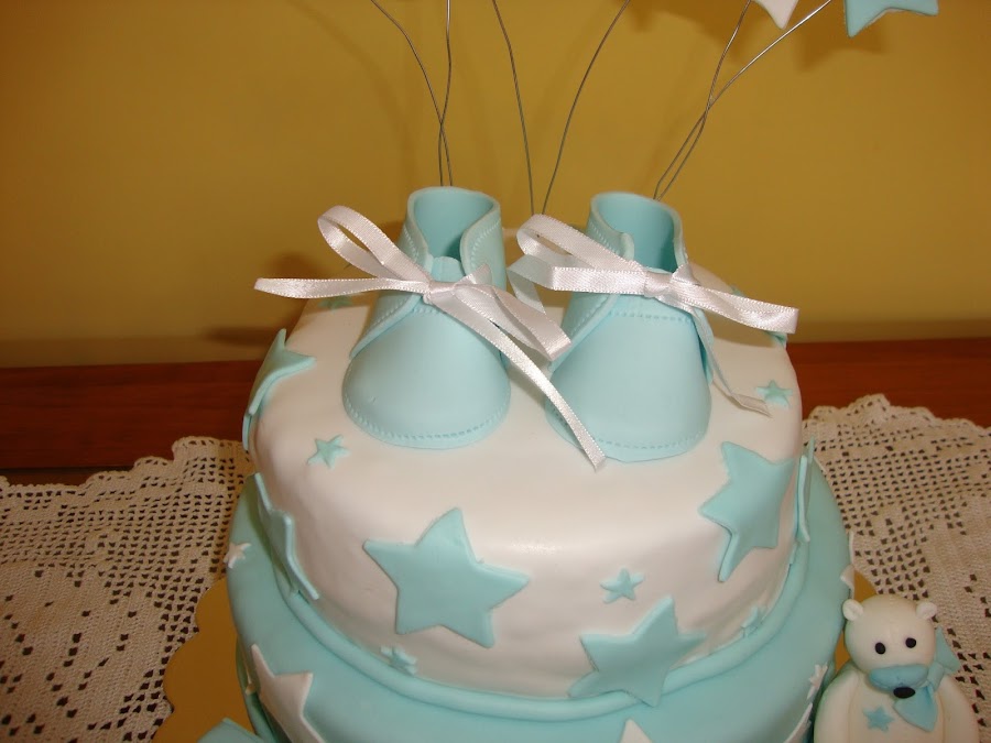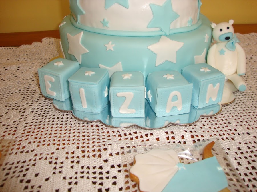 Toda la decoración está realizada con fondant aunque también tiene alambre que sujeta las estrellas.