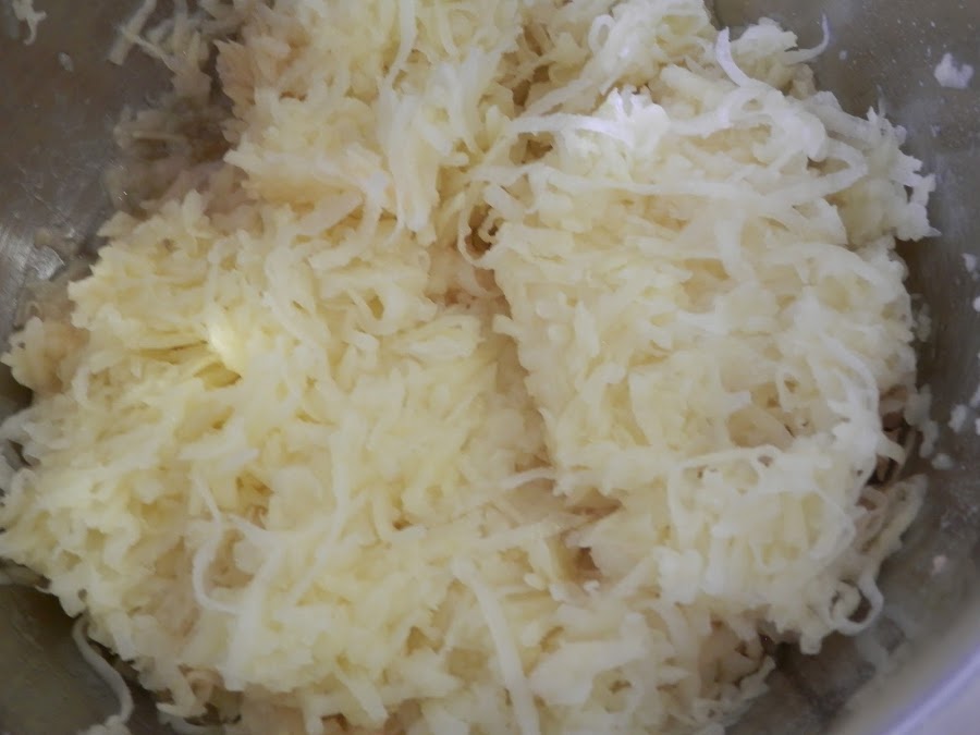 ¿Te acuerdas que teníamos la patata rallada escurriendo en el colador? Vamos a ver qué hacemos con ella.