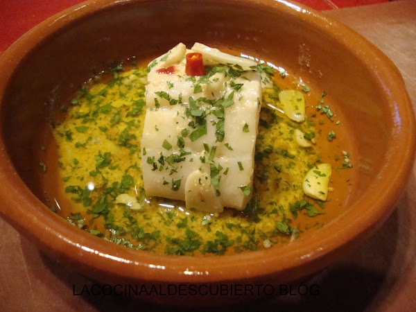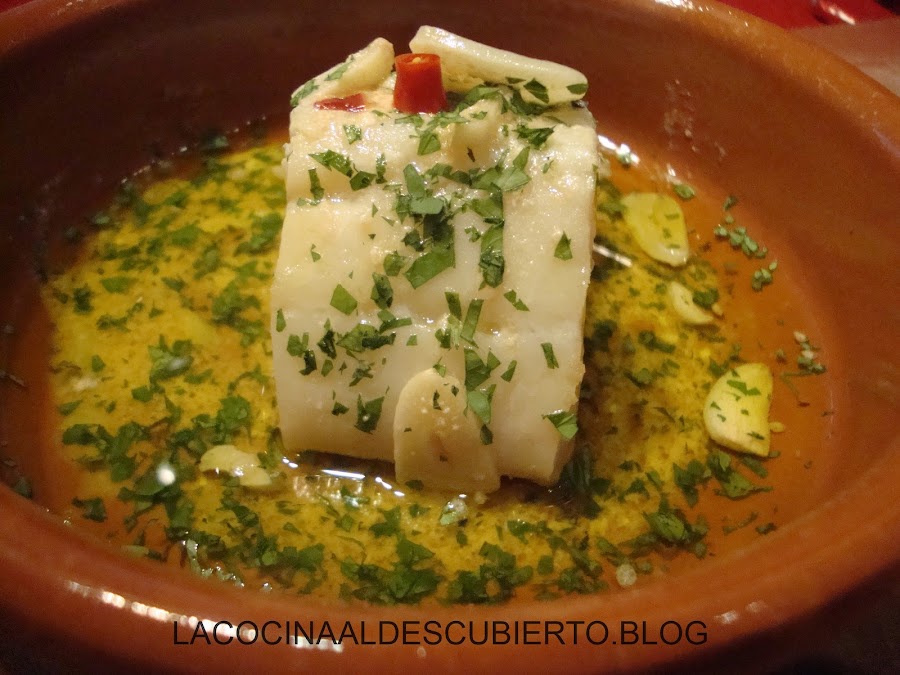 EN UNA SARTEN VERTEMOS EL ACEITE DE CONFITAR EL BACALAO Y AGREGAMOS LOS AJOS LAMINADOS Y LAS GUINDILLAS, CUANDO SE VAYAN A EMPEZAR A TOSTAR LOS AJOS AÑADIMOS EL VINAGRE Y EL ALBARIÑO, PARA ASIN BAJAR UN POCO LA TEMPERATURA DEL ACEITE Y ASIN EVITAR QUE LOS AJOS Y LA GUINDILLA SE QUEMEN, LIGAMOS UN POCO Y AÑADIMOS POR ENCIMA A LOS LOMOS DE BACALAO QUE PREVIAMENTE TENDREMOS COLOCADOS EN EL PLATO DONDE LO VAYAMOS A SERVIR, POR ULTIMO DECORAMOS COLOCANDO LAMINAS DE AJOS Y RODAJAS DE GUINDILLA ENCIMA DE LOS LOMOS DE BACALAO Y ESPOLVOREAMOS PEREJIL RECIEN PICADO.