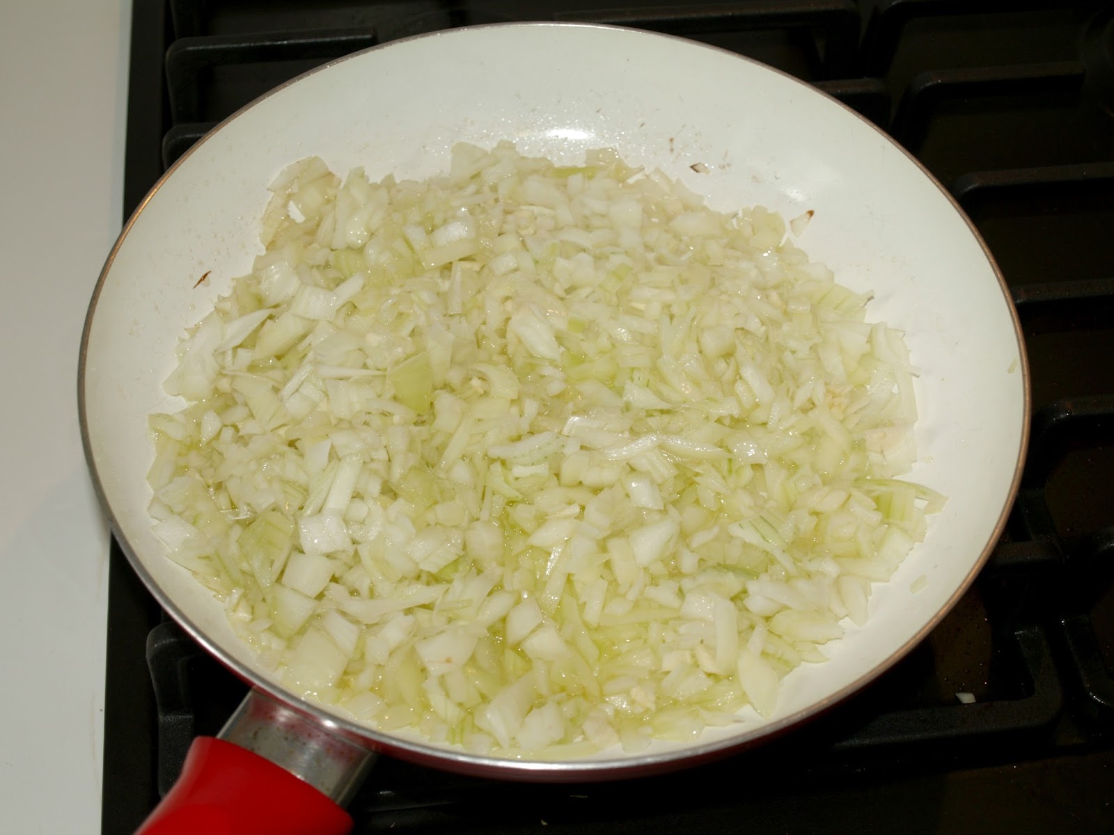 - En una sartén calentamos aceite y ponemos a dorar la cebolla y el ajo picados.