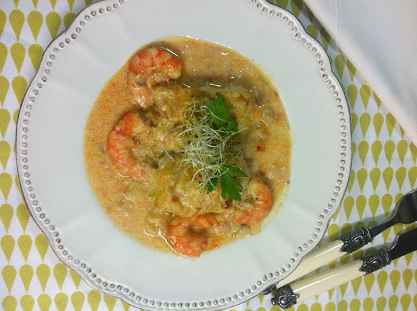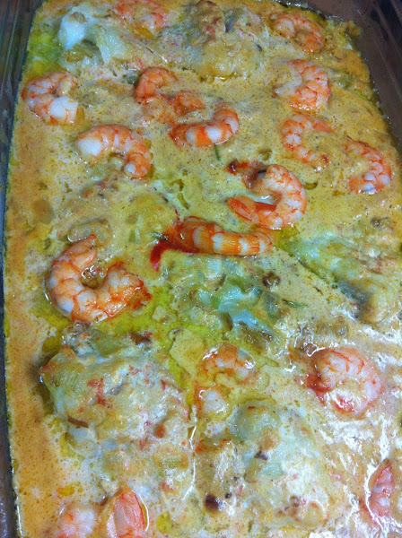 Se pelan los langostinos y se esparcen sobre el bacalao cuando queden unos 5 minutos de horno.
