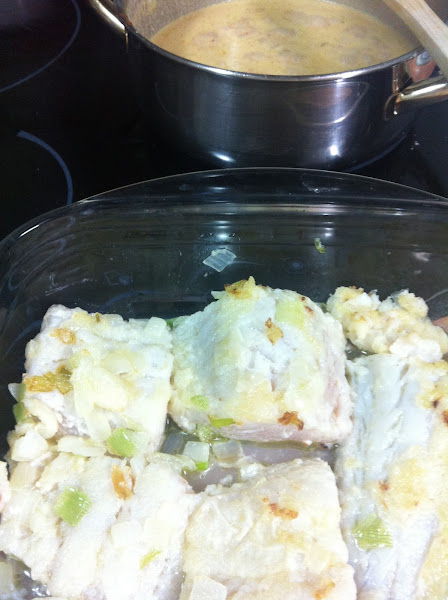 Siempre se ha dicho que las salsas se utilizan para enmascarar la calidad de un pescado, pero en el caso de un bacalao esto no se cumple. De hecho, aunque esta receta la podéis elaborar con bacalao desalado, yo la he preparado con bacalao fresco. Este pescado tan blanco, con su carne tan apretada y que se abre en lascas está rico en mil preparaciones: preguntadles a los portugueses!!