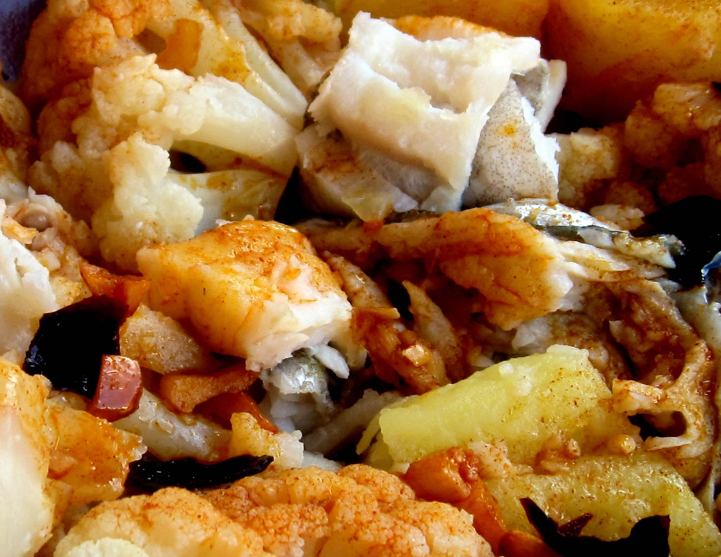 Cuando haya pasado el tiempo, abrimos y le ponemos los lomos de bacalao encima de todo,cerramos otra vez la olla y dejamos 2 minutos.