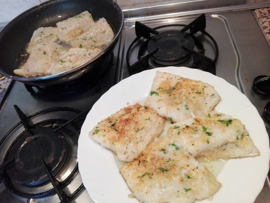 Elaboración: Secar con papel absorvente el bacalao y enharinar.