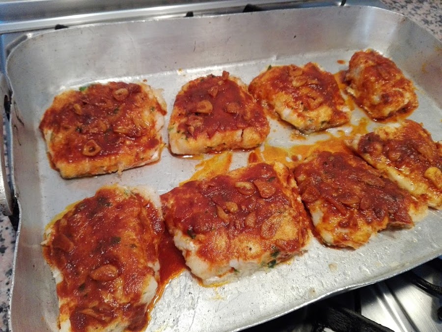 Cubrir con la salsa el bacalao y acabar de cocer al horno, arriba y abajo, 10 minutos a 180 ºC.