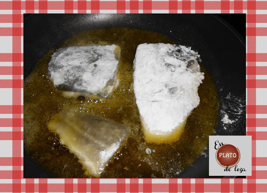 Con los lomos de bacalao lo mismo, lo enharinamos un poquito y lo marcamos en aceite caliente.