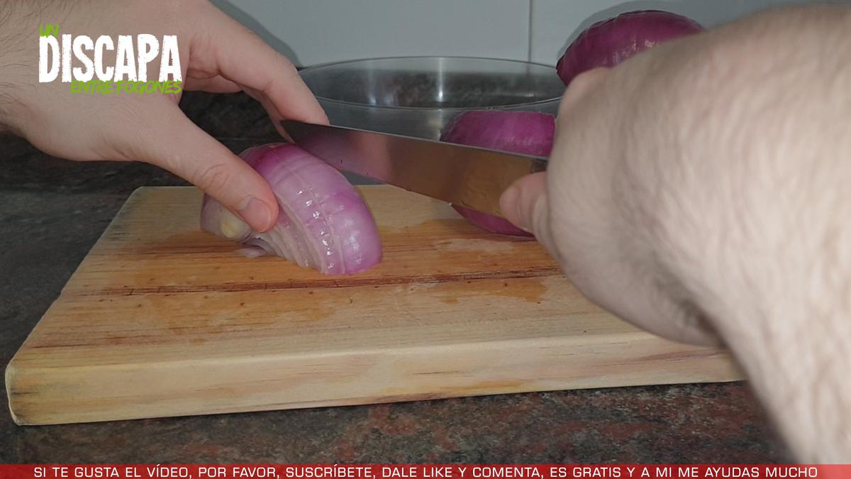 4Mientras tanto, vamos a trocear las cebollas, las trocearemos a groso porque luego lo vamos a triturar.