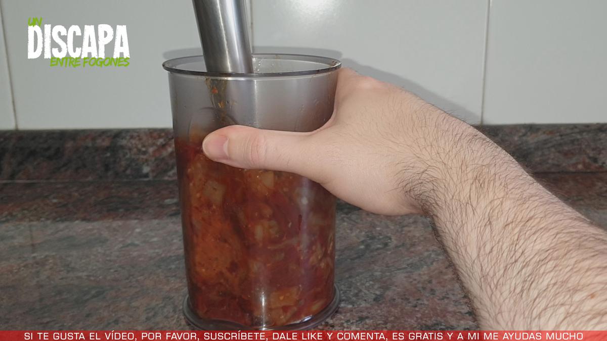 8Pasados los 5 minutos, procedemos a triturar la salsa.