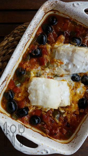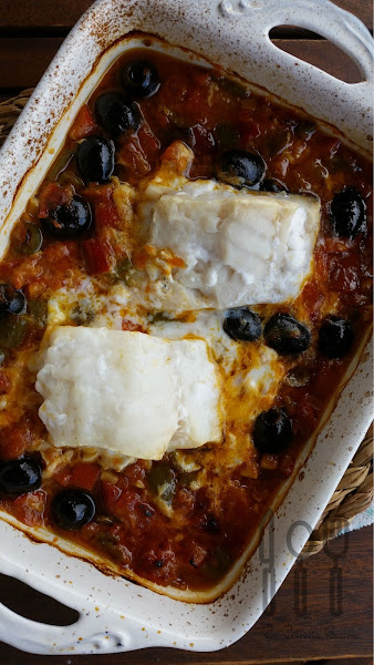 Pasados unos minutos, verteremos nuestro "pisto" en una cazuela que pueda ir al horno y encima, colocaremos los lomos de bacalao. Hornearemos 15 minutos a 180º y ya tenemos listo nuestro plato.