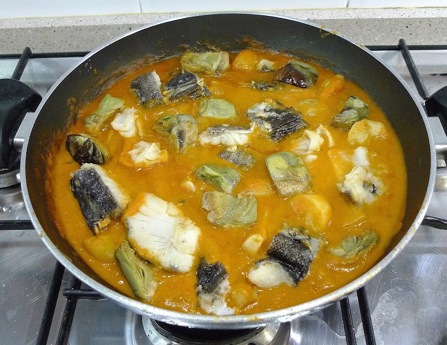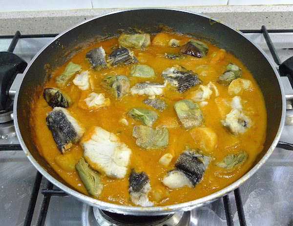 Pasado ese tiempo, añadimos el bacalao y dejamos que se cocine cinco minutos más.
