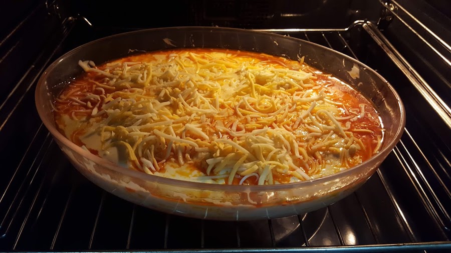 9.- Horneamos arriba y abajo, a 220º unos 5 minutos, o hasta que el queso este dorado.